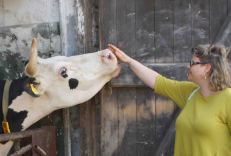 Besuch auf dem Ökohof Brodowin und freundliche Begrüßung der Kühe im Stall.