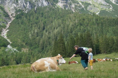 Der Urlaubsbauernhof liegt im Salzburger Land, auf 980 m Höhe. Direkt hinter dem Hof beginnen die Wanderwege in das Tennengebirge – und mittendrin grasen in aller Ruhe die Kühe auf der Alm. Der Hof betreibt Milchwirtschaft, lässt die Kühe jedoch in den warmen Monaten im Freien.