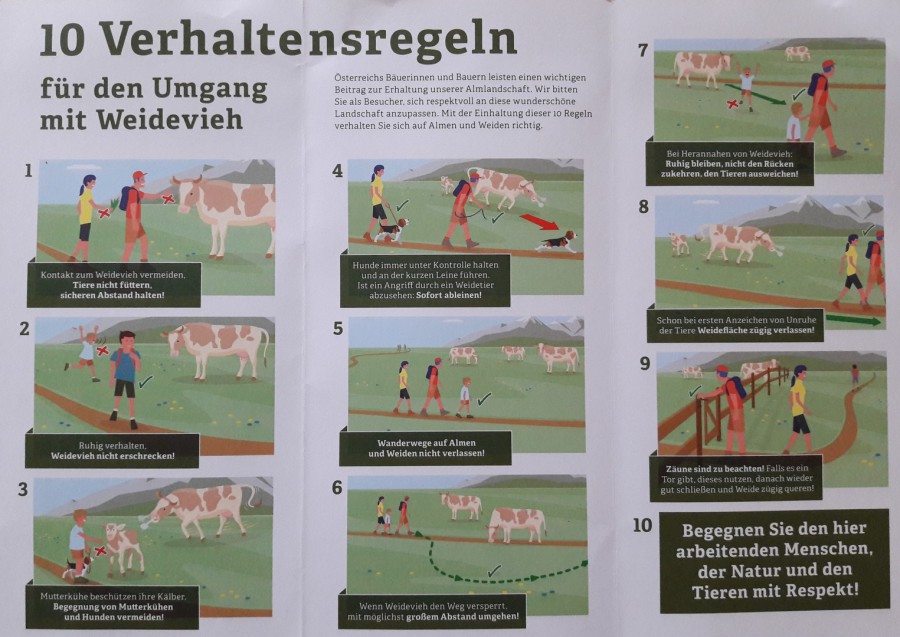 Flyer für Touristen, die eine Wanderung durch die Berge/über die Alm unternehmen möchten.